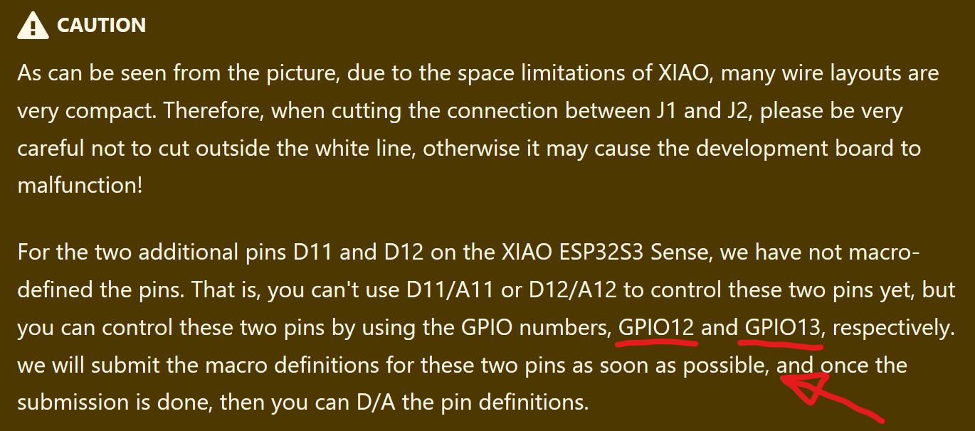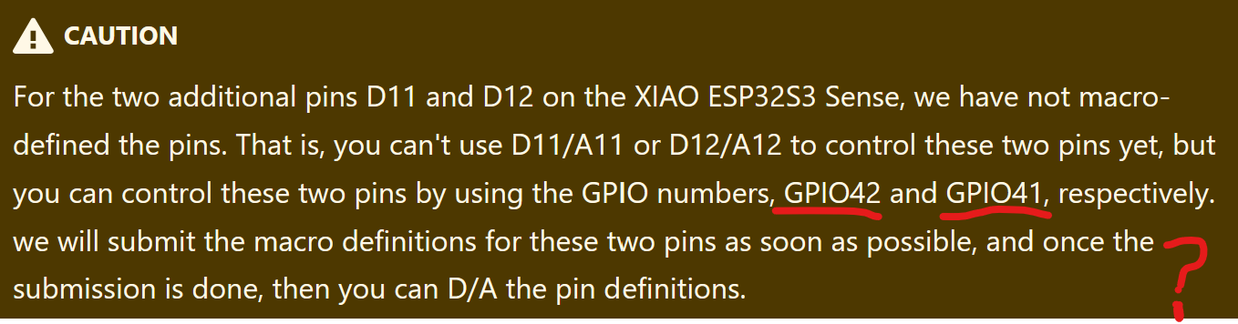 The first confusing thing is that this page gives opposite indications on those GPIO names, check out the yellow boxed text in the step 1 and step 3 of the “For Sense” section. One of them tells to use GPIO 12 and 13 and the other 42 and 41 :