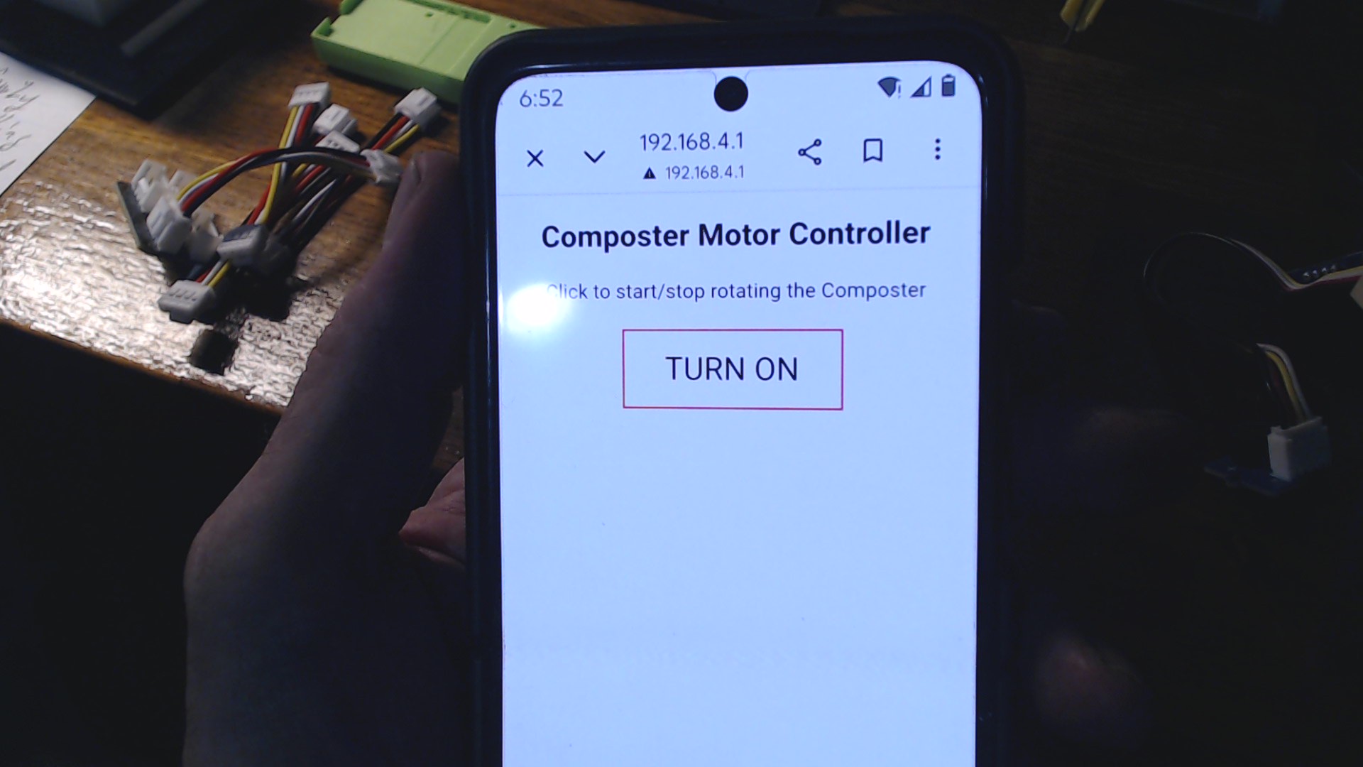 Upon connecting to the composter with password, (no internet NAG) select options on mobile to continue to use the connection anyway , and I then Browse to the IP