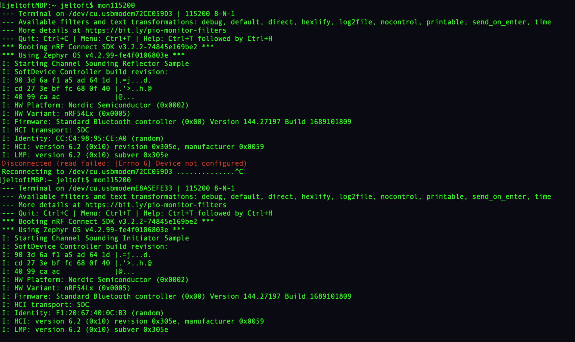 I do see both devices from the nordic app on my phone, so that’s also a great sign.