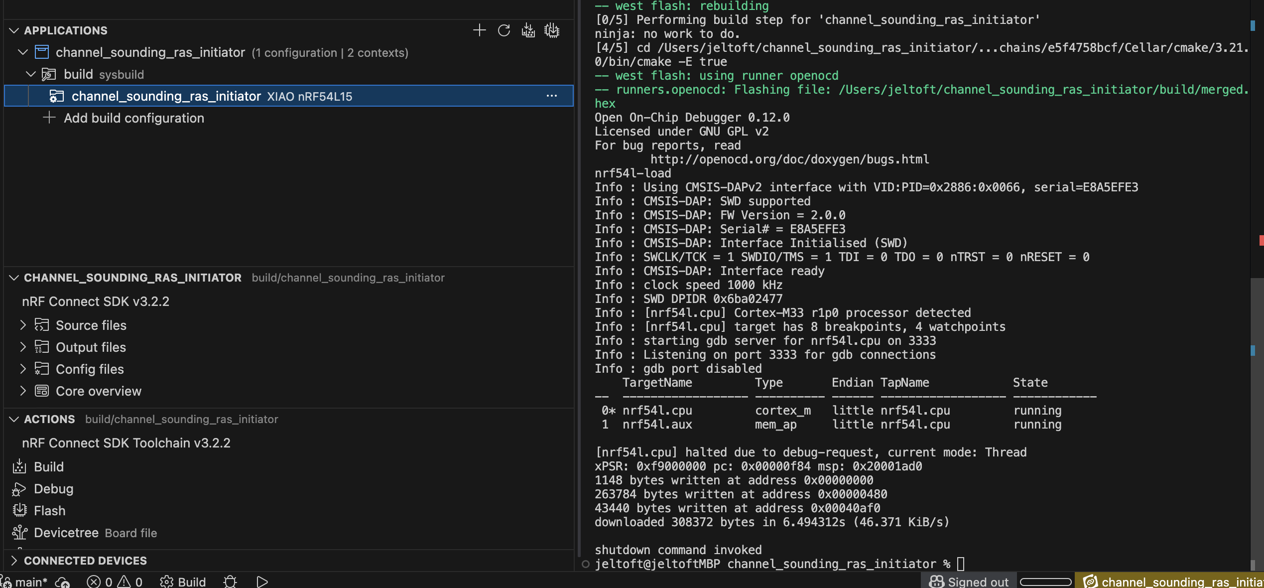 -- west flash: using runner openocd