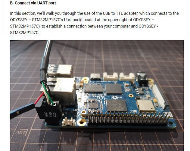 I’m having trouble connecting to the ODYSSEY STM32MP157C Evaluation Board. I’ve tried a USB to UART cable (Adafruit model 954) and a USB C cable (Belkin F2CD084bt0.5MBK) according to the instructions on the ODYSSEY STM32MP157C wiki page.