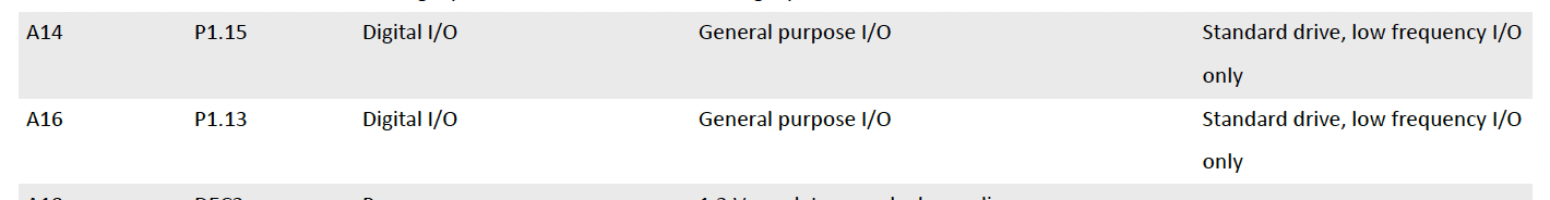 Note that lots of pins do not have the “Standard drive, low frequency I/O only” designation. If you’re right that they are as good as any other I/O, why are they documented this way?