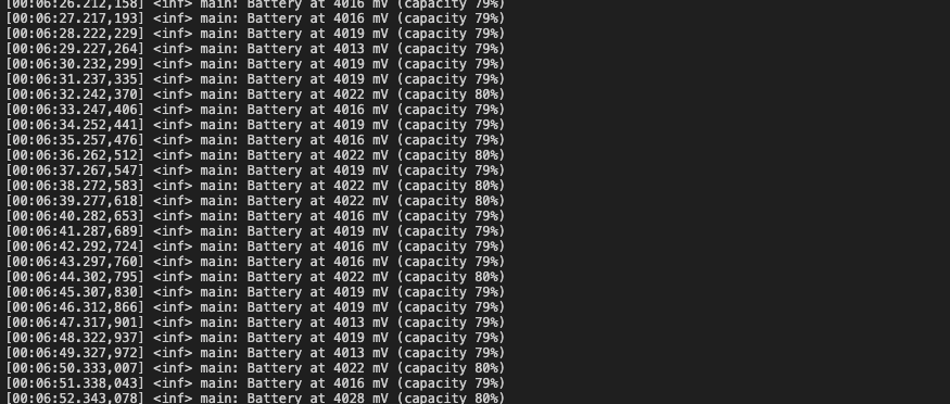I’m also trying to read the battery voltage and percentage. It started at around 73%, and after a while it increased to about 4079 mV (86%). That means it’s charging, right?