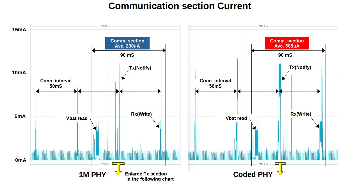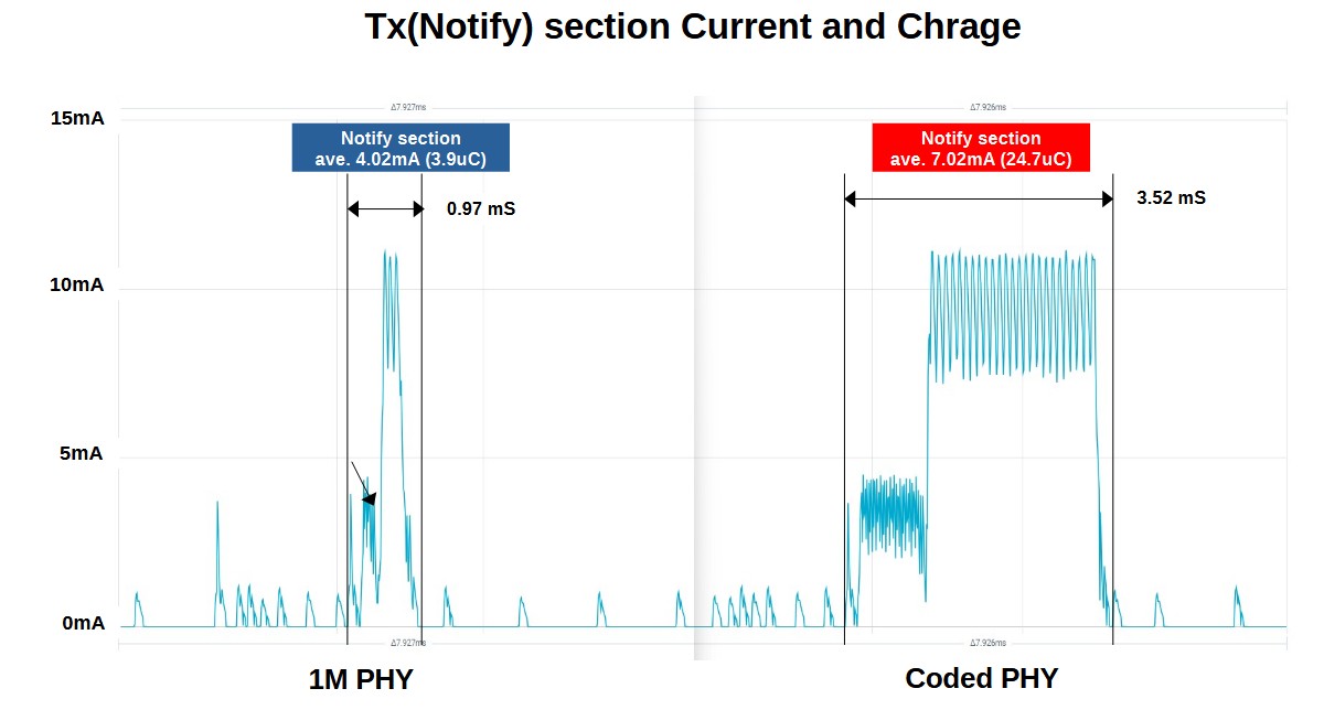 4. The 1-second average current with Coded PHY was more than 2x that of 1M PHY.